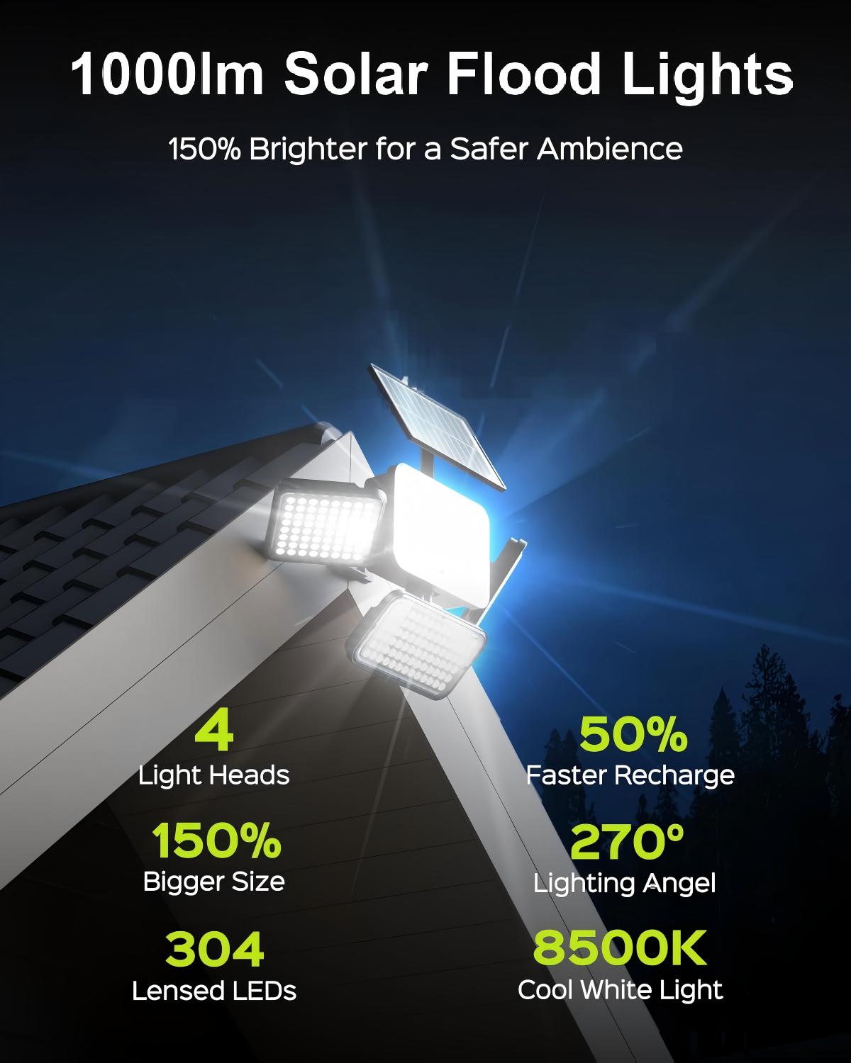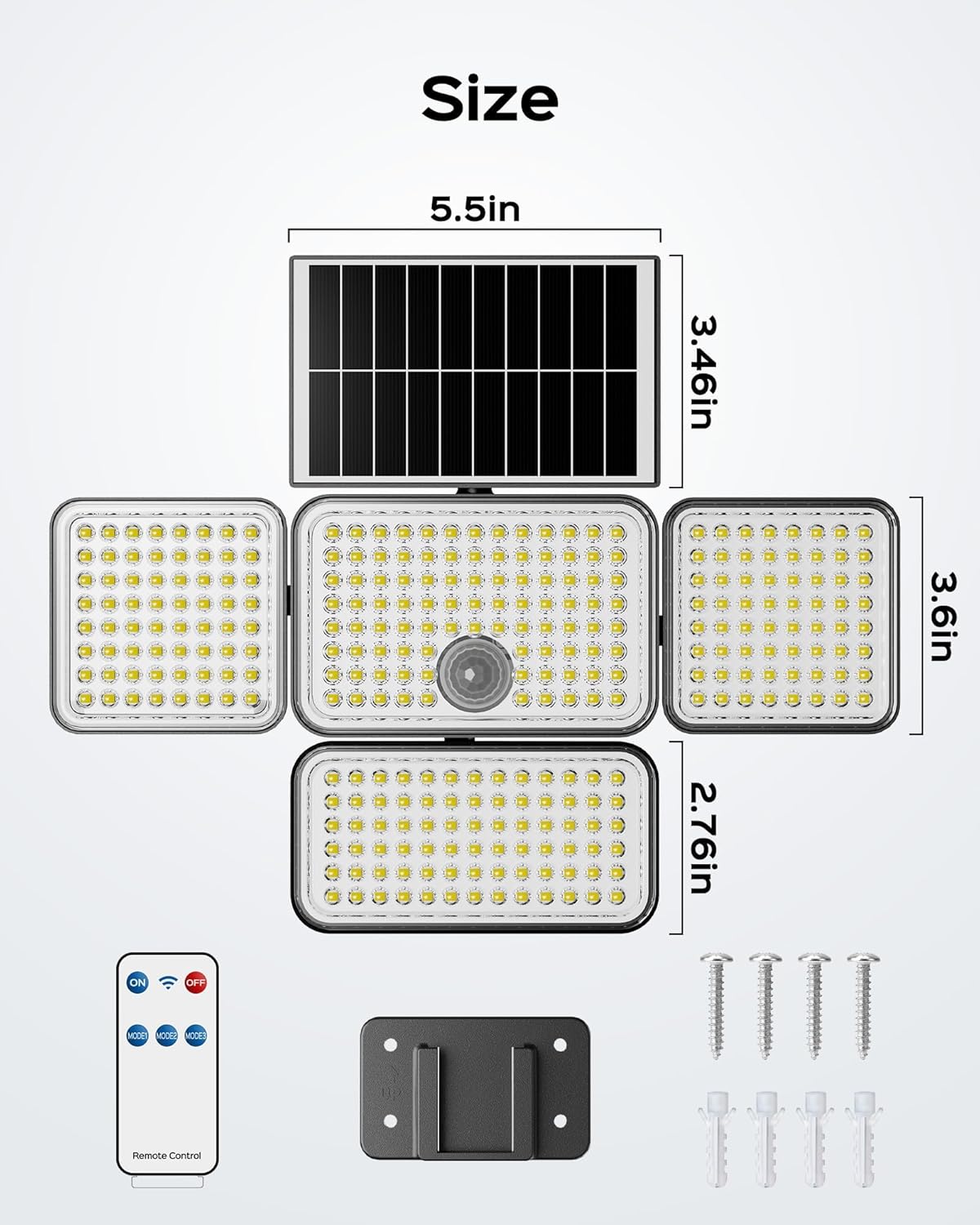 Luces de inundación solares divididas de 4 cabezales con cable de 16,4 pies y control remoto,